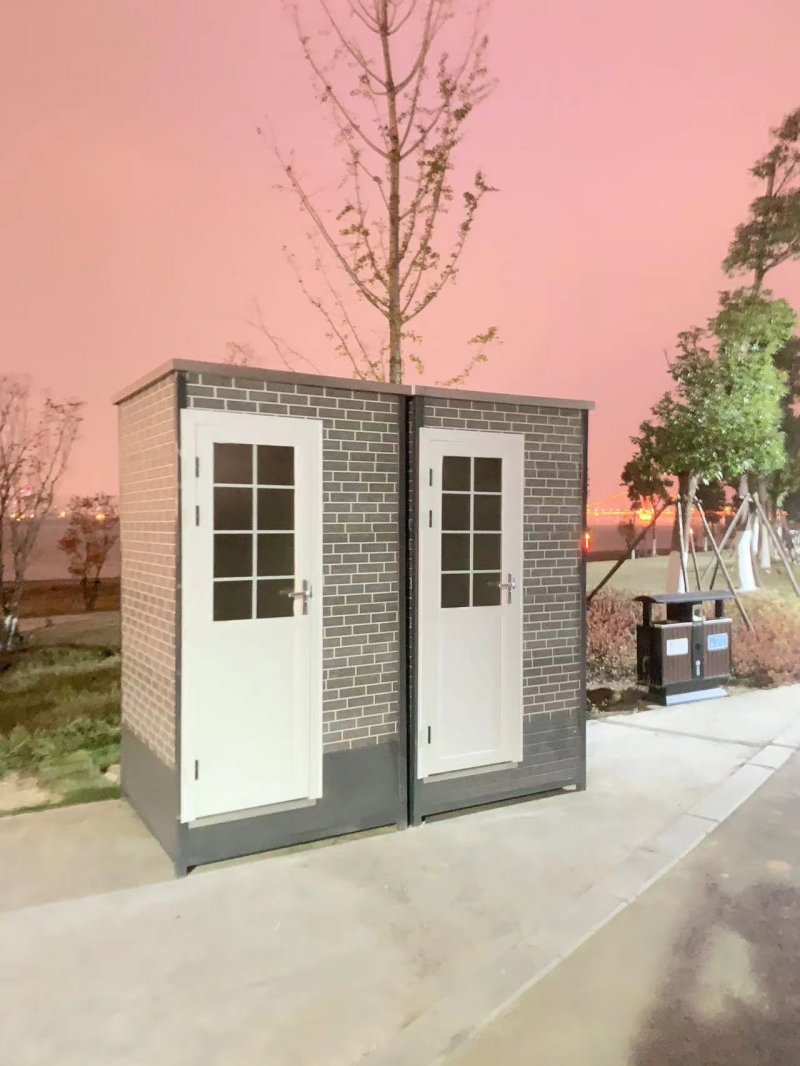 MORE拼裝廁所;在廠里做好各個(gè)廁所部件,再到現(xiàn)場(chǎng)組裝在一齊,適合不易運(yùn)輸?shù)拇笮蛶_@座箱式廁所,女廁5個(gè)蹲位內(nèi)配工具間,男廁2個(gè)蹲位+2小便斗,第三衛(wèi)生間由殘疾馬桶、助力洗手盆和兒童馬桶、兒童洗手盆外加?jì)雰号_(tái)等設(shè)施。廁所前后有窗,通風(fēng)采光,前部走廊裝有屋檐,防雨防曬。此廁所位于公路綠道邊,整體大氣,功能齊全,造型美觀,是一道難得的靚麗景觀!